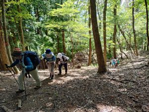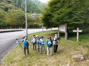 兵庫の山シリースの第8回目の空山、9年ぶりです。14日が雨天だったので2日順延しての実行です。空山は岡山県境に近い山ですので往復で6時間程、行動時間が5時間程ですので日帰りで登るには限界に近い山です。登山口の魚町公園のトイレも有る広い駐車場に車を止めて登り始めます。登山口、及び途中には案内板が設置されて、かつては整備されていたと思われますが、現在では草が生え放題で全く手が入って居ない様で、早速蛭が体を持ち上げ、たかられるメンバ-が居て一騒ぎですが、登るに従って蛭も姿を消します。帰り道も用心が必要です。
