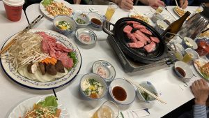 宿舎では明日も晴れそうですので、明日の乗鞍岳に向けて乾杯後飛騨牛を頂きます。