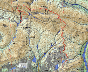 薬師前山への登りより振り返る 各務ヶ原アルプスル-ト図(クリック拡大)