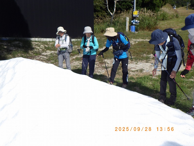 昼食後品又峠に向かい、最高点リフト降り場(P1226)で南東方向に折れ曲がってゲレンデの中を進み、旧ゲレンデの廃リフト支柱を目掛けて下ります。