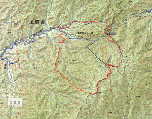 ゲレンデ横に雪の塊が ブンゲン~品又峠ル-ト図(クリック拡大)