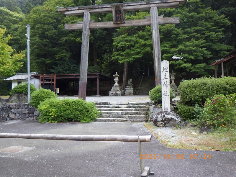 明王谷の林道を下り、朝の神社でお礼の参拝後駐車場に向かいます。