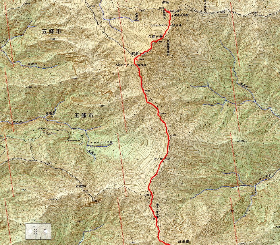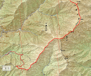 釈迦ケ岳~弥山ル-ト図(クリック拡大)
