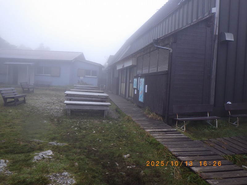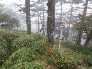 八経ヶ岳山頂には私だけで、早々に山頂を辞し数か所設置されているオオヤマレンゲ保護柵の扉を開閉しながら弥山小屋に到着。着替え後濡れた装備を乾燥室に入れますが小屋の本日の宿泊者は私を入れて4名のみでゆっくりと就寝できます。