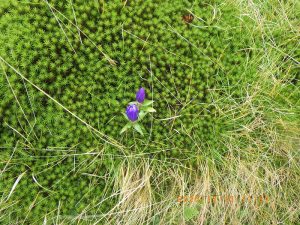 雨に濡れた岩で滑らない様に慎重に上り下りしながら孔雀岳への分岐までたどり着くと後は普通の登山道です。靴は雨水でグチュグチュになってしまいますが、進むにつれて雨も止み時々はガスも薄くなって明るくなって来て期待しますが、そうは問屋が卸してくれません。