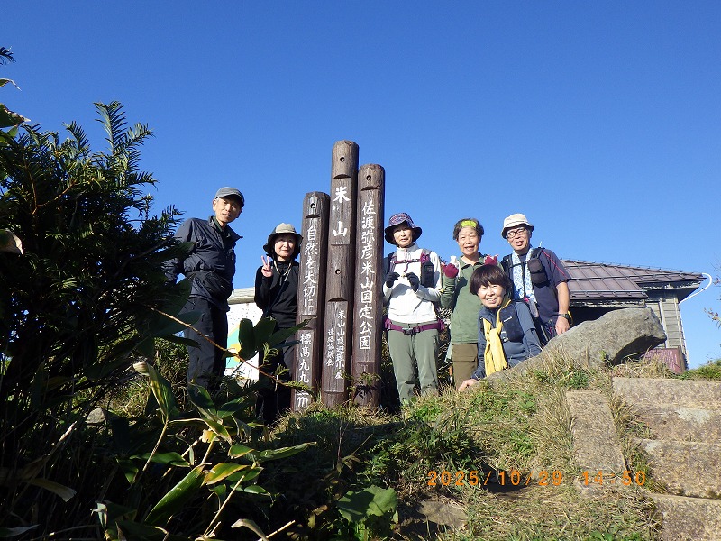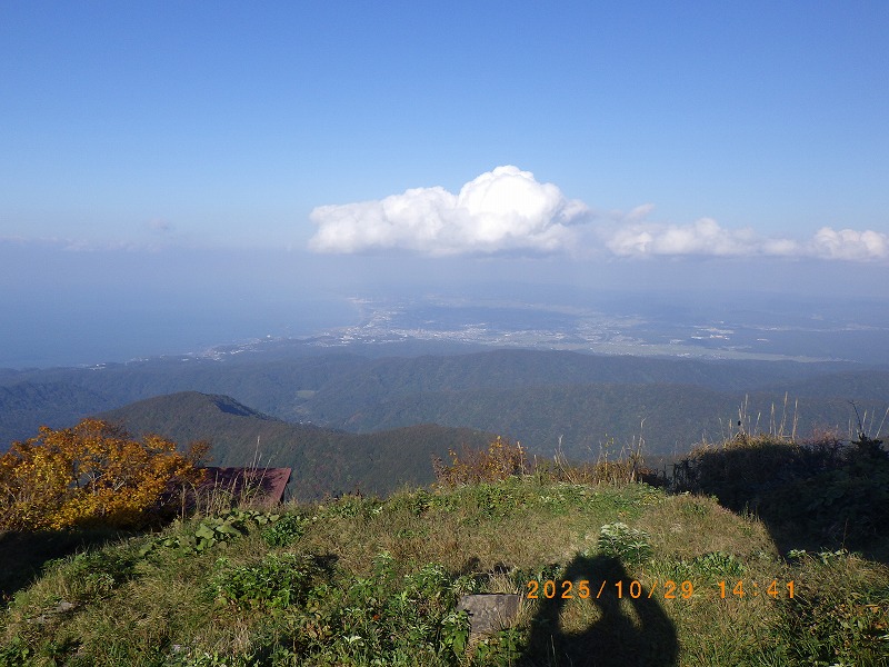 上空はすっかり青空になって来ましたが、遠くの山々は雲の中で少し残念ですが、晴天の米山に登れたことに感謝です。山頂直下には綺麗に掃除された避難小屋が有り、元旦の初日の出を拝む為に大晦日から登って来る人も多いのかも知れません。