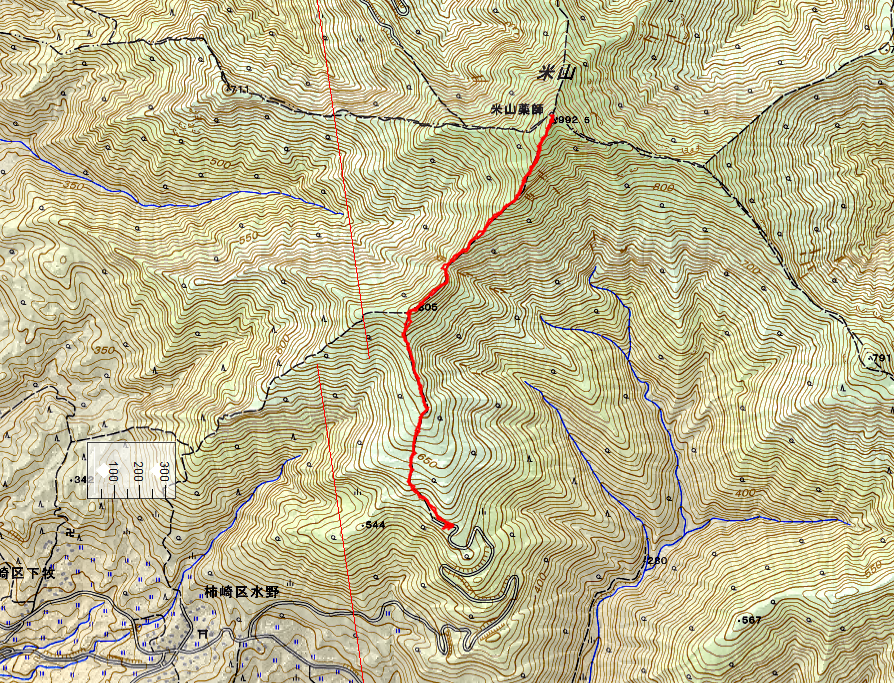 夕方の駐車場に戻って来ました 米山ル-ト図(クリック拡大)