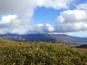 気象観測レーダ-ドームの山頂は先着者が一人だけで遠望も楽しめないまで三角点の写真を撮り、早々に山頂を後にし、踏み跡を辿って八島湿原分岐まで降りますが、どうも降りて来たル-トは通行禁止の様です。