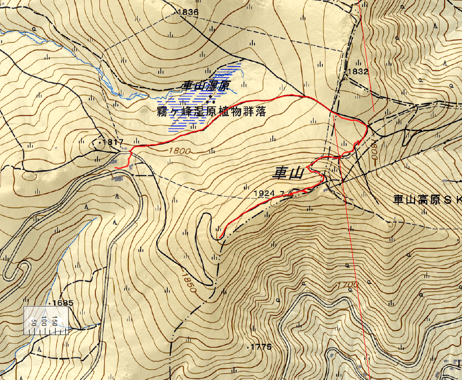 ビ-ナスラインより富士山 車山ル-ト図(クリック拡大)