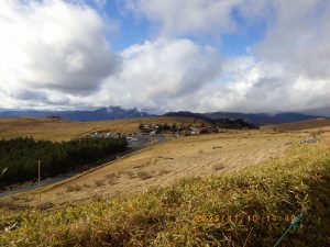 車山乗越を少し降りて車山湿原の木道に入りますが、それまでの道は雨の後で靴がドロドロなってしまう程の泥濘状態で滑りやすいのでそろそろ歩きます。午後4時前の駐車場は4台だけで早々に今日予定している車中泊する道の駅に向かいます。