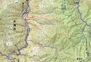 国道367号線葛川木戸口町内の道端(7:40~7:50) →森山岳(11:22~11:30)→森山岳北側Co1040mコル付近(11:35~12:05)→ニゴ谷右岸尾根下降点(12:33) →国道367号線葛川木戸口町内の道端(14:06)