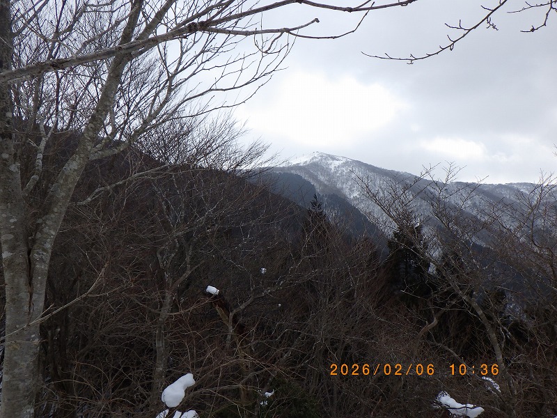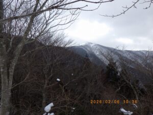 明日は会の例会で打見山~森山岳~蓬莱山の周回ル-トが計画されている様ですが1日早い登頂です。山頂は風が有り寒いので北側のコルまで下って昼食にします。