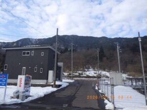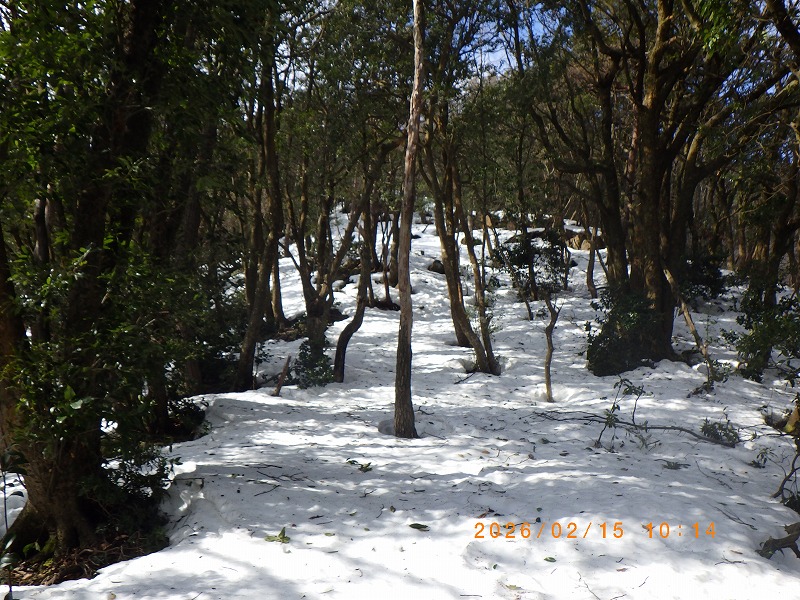 幸い今回と同じルートでのレポが有り積雪期でも危険は無い様なので、昨年のル-トではなく一つ北側の支尾根を登るルートに変更します。大岩大権現までの舗装道路は完全に除雪されており、そこからワカン、スノ-シュ-を履きます。