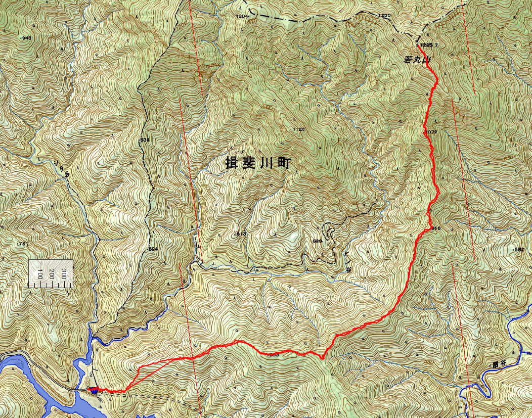 薄暗くなった駐車場に戻って来ました 若丸山ル-ト図(クリック拡大)