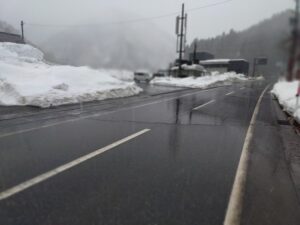 帰路では初めは普通の降雪でしたが、滋賀・岐阜県境に向かう国道に入ると飛び出して来た鹿と接触し(右前バンパ-破損)し、更に前が殆ど見えなくなる程の猛烈な降雪が始まり、道路の真ん中(と思われる位置)を保持しながらノロノロ運転で県境の八草トンネルまで辿り着き、トンネルを抜け普通の雪になった時は本心ホッとします。